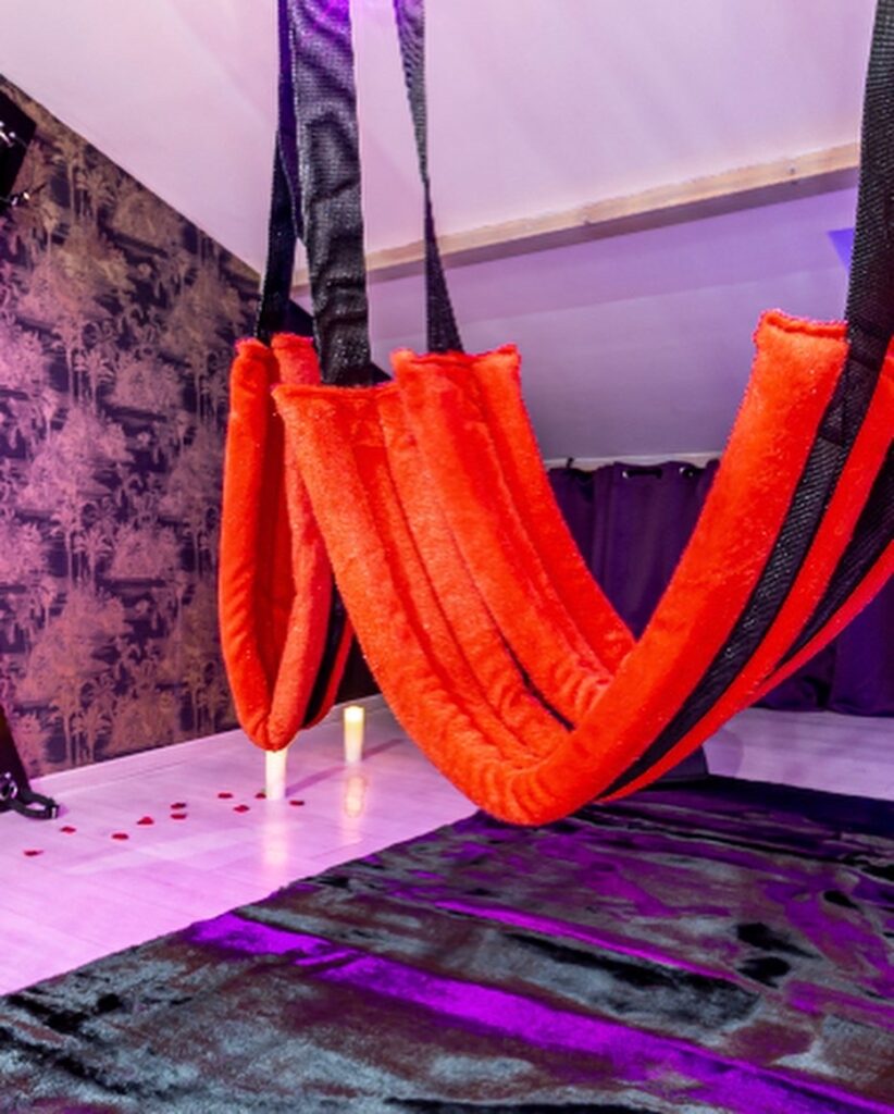 Le donjon BDSM, en revanche, est conçu comme une véritable salle de pratique. Les équipements sont fixes, renforcés et pensés pour un usage intensif : croix de Saint-André professionnelle avec ancrage solide, banc de fessée ergonomique, cage d’enfermement fonctionnelle, barres de suspension ou points d’ancrage certifiés, parfois table de contrainte ou mobilier médicalisé. L’isolation phonique est généralement supérieure et la scénographie plus immersive. Le donjon s’adresse aux pratiquants réguliers recherchant un cadre technique et sécurisé.
